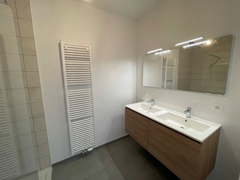 Nous entrons dans cet appartement de 2 chambres par le hall d'entrée où vous trouverez le grand séjour avec cuisine ouverte équipée (équipée de : plaque à induction, hotte aspirante, évier, lave-vaisselle et réfrigérateur). L'accès direct à la terrasse très spacieuse est un gros plus et assure beaucoup de luminosité. La salle de bain est équipée d'une spacieuse douche à l'italienne et d'une double vasque avec miroir.