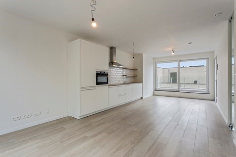 Schitterend nieuwbouw appartement met 2 slaapkamers met zowel aan de voor- als achterzijde een ruim terras tussen het groen. Het appartement beschikt over een leefruimte (31,31 m²) met open ingerichte keuken, terras 1 (26 m²), terras 2 (22,46 m²), master bedroom (10,60 m²), tweede slaapkamer (5,50 m²), badkamer (4,43 m²) ingericht met inloopdouche en wandtafelkast, apart gastentoilet en berging. Een volledig uitgeruste keuken en badkamer, een kelder en staanplaats inbegrepen in het appartement, top kwaliteit van de afwerking. U bent van alle nodige wooncomfort voorzien terwijl u aan de nieuwste ecologische en technische normen voldoet. Kortom: een unieke kans!